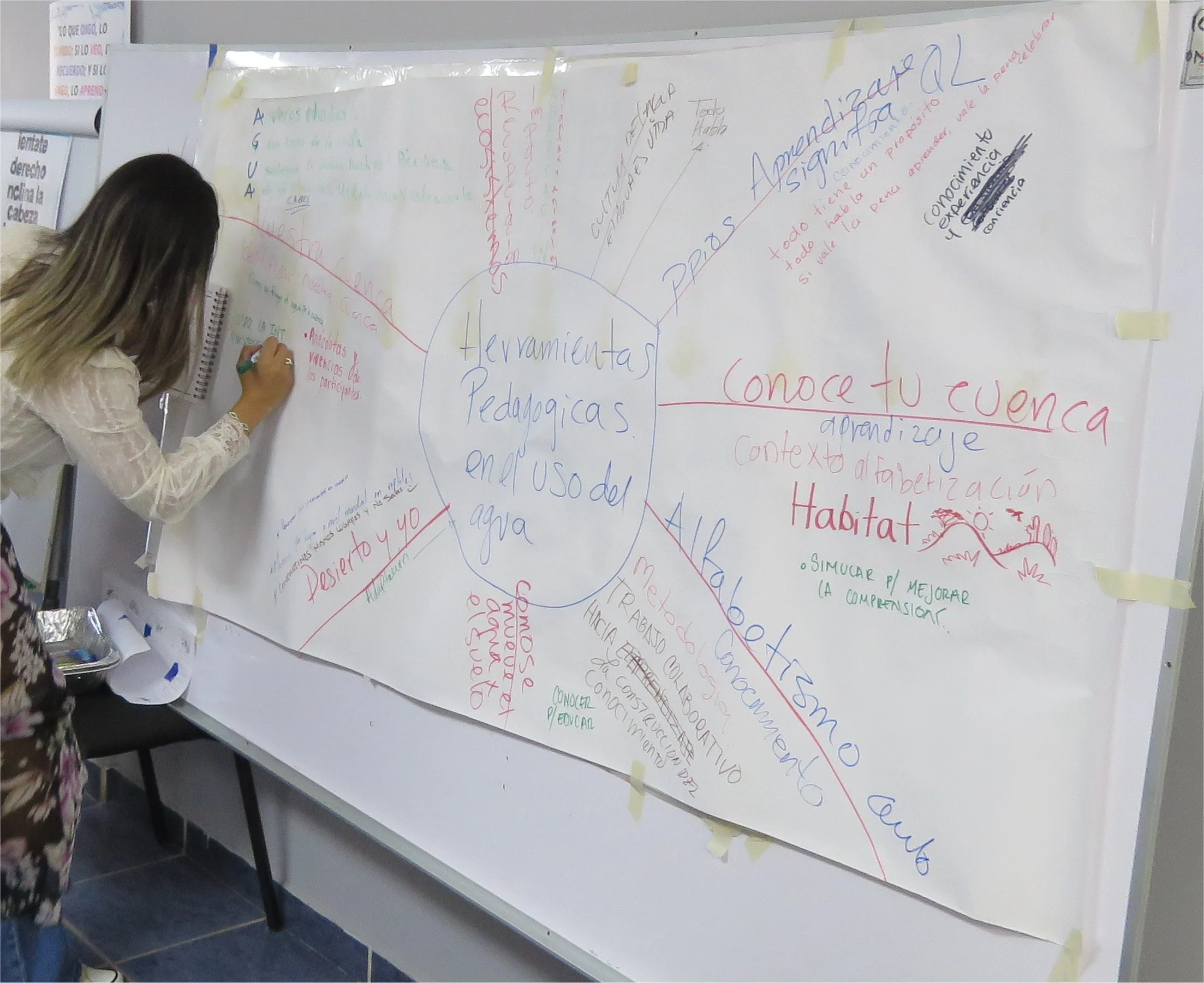 Este taller aterriza en sus actividades todos los elementos del alfabetismo ambiental, sensibilización y concientización; conocimiento; desarrollo de habilidades; cambio de actitud; acción participativa e incluyen preguntas que promueven la participación y despiertan interés en el tema de la cuenca y el agua.